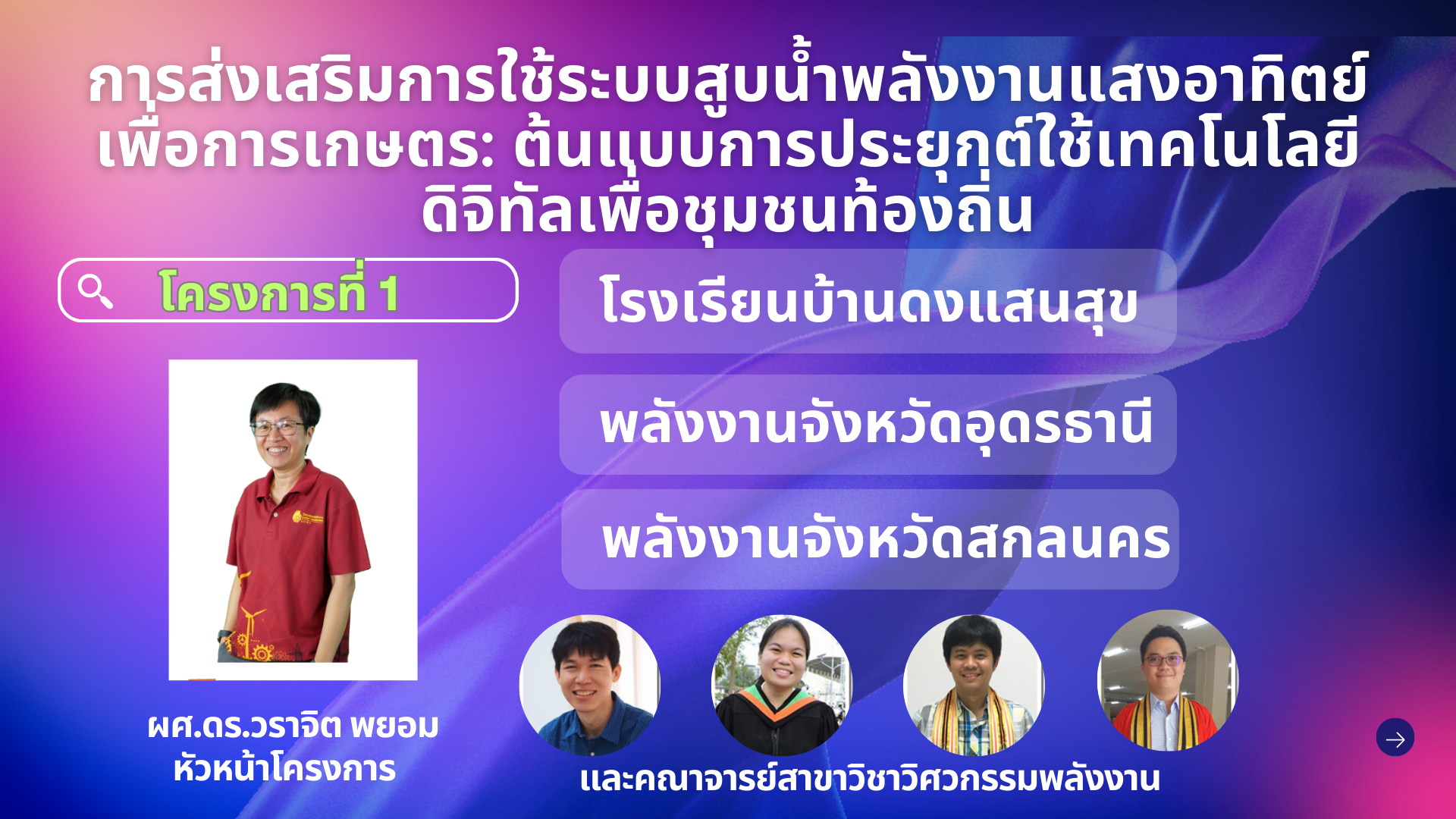 • การส่งเสริมการใช้ระบบสูบน้ำพลังงานแสงอาทิตย์เพื่อการเกษตร: ต้นแบบการประยุกต์ใช้เทคโนโลยีดิจิทัลเพื่อชุมชนท้องถิ่น